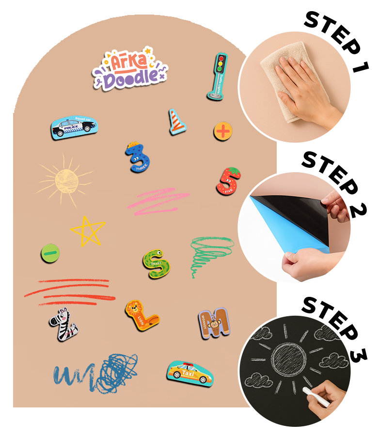 STEP 3 - Secure & Enjoy: Press edges firmly for a strong hold. Your wall arch is ready for magnets and chalk! To remove, peel gently with heat.
