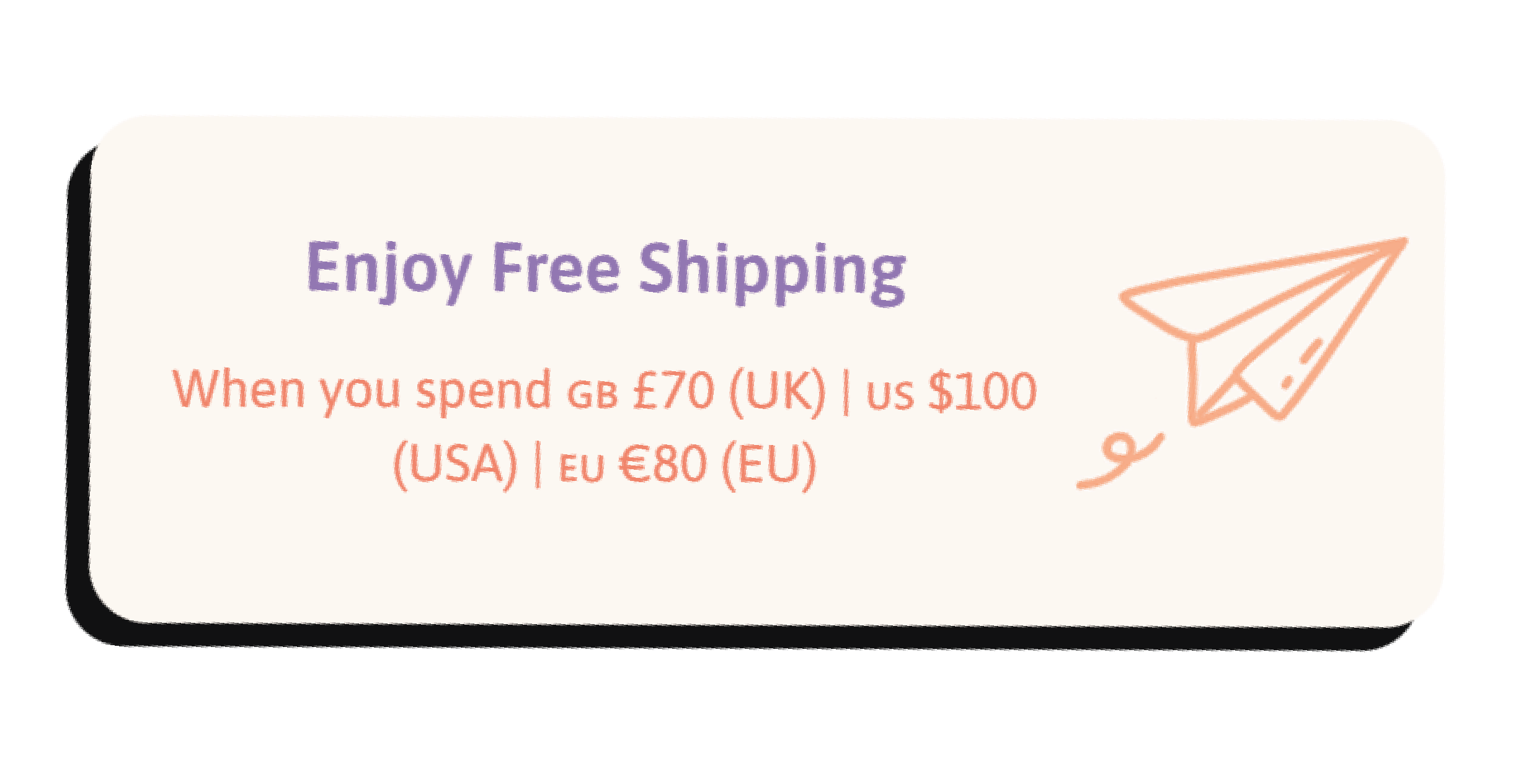 When you spend 🇬🇧 £70 (UK) | 🇺🇸 $100 (USA) | 🇪🇺 €80 (EU)