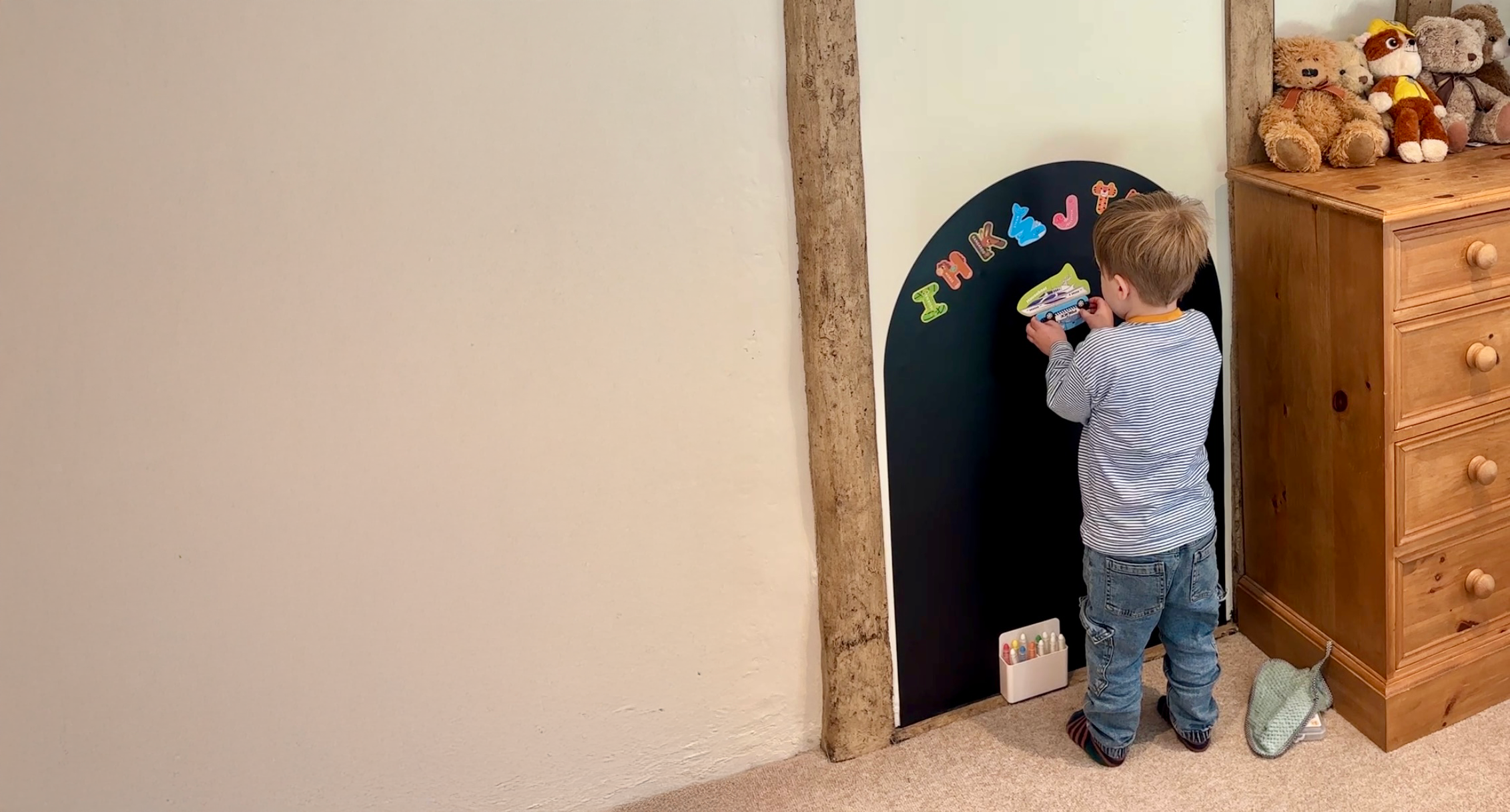STEP 3 - Secure & Enjoy: Press edges firmly for a strong hold. Your wall arch is ready for magnets and chalk!
