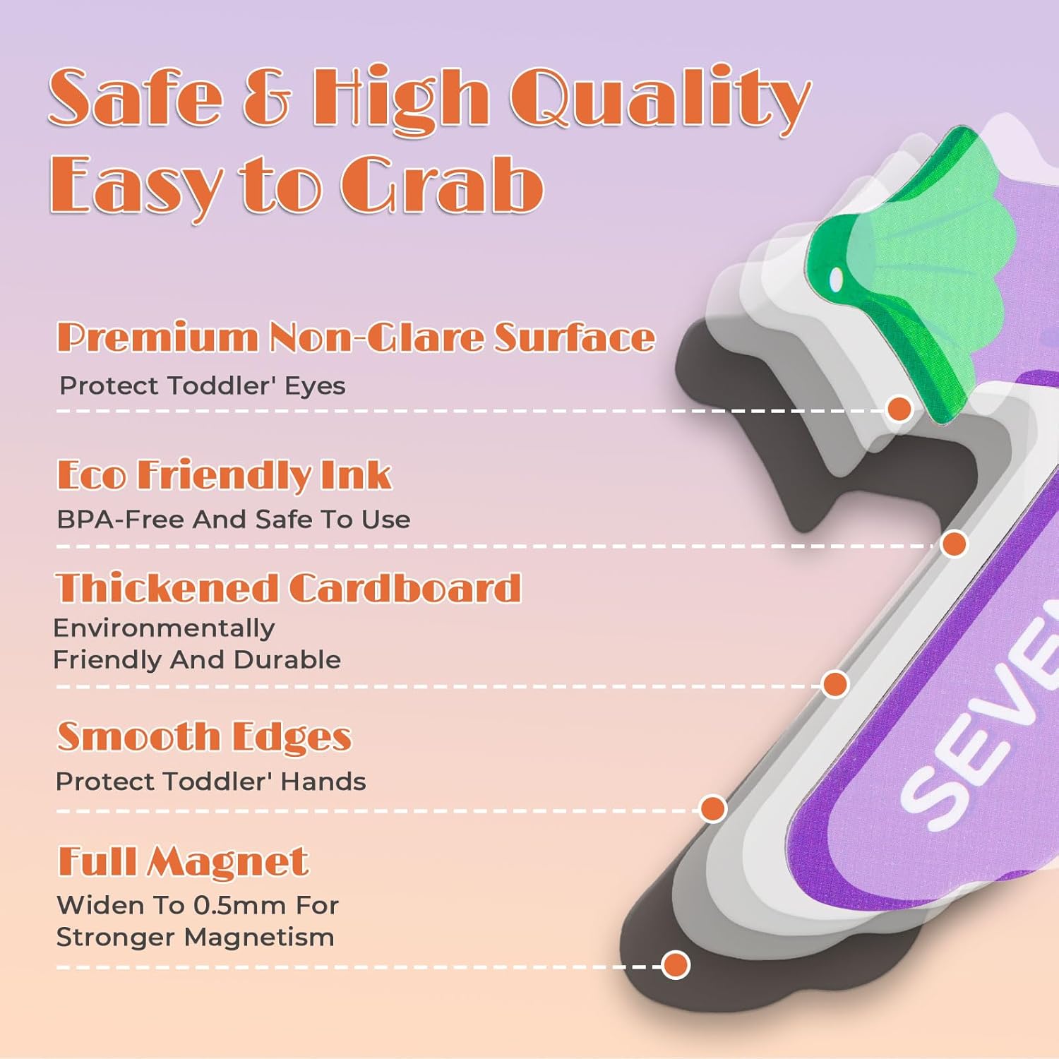 Non-glare surface, smooth edges, and eco-friendly ink make these magnets safe for little hands and eyes.